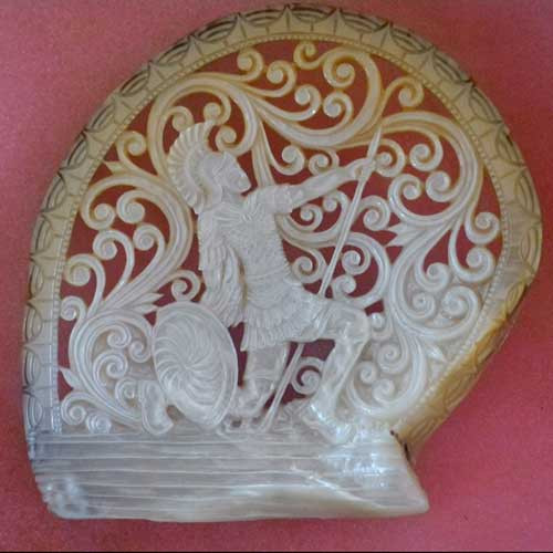 Mother of Pearl Shell Carving Emperial Soldier