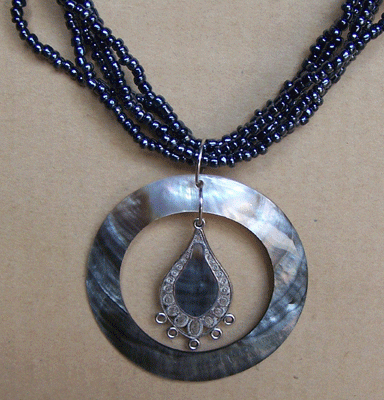 Big Neckalce Roundmaterial From Bead ,Mop Black,Metal List Art