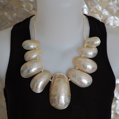 shell necklace with bead pearl with high quality turbo shell pearlised art necklace shell necklace with pearlised huge size for fashion shell necklace jewelry made by caspla bali