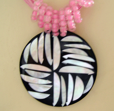 white mop shell mosaic in round black receine necklace with bead